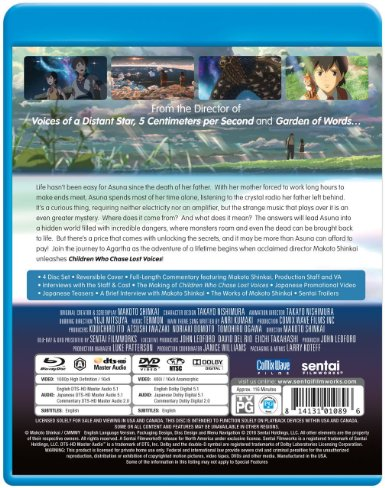 Strange sounds in the darkness… Unearthly music from an old crystal radio… These are all the warning Asuna Watase has before a simple walk to her clubhouse catapults her into a nightmarish adventure that will take her beneath the Earth to a lost land beyond the realm of legend! Attacked by a strange monstrous creature, rescued by a mysterious stranger and pursued by a relentless enemy, Asuna finds herself enmeshed in a centuries old mystery that will bind her to a strange young defender and lead her inevitably, towards a secret that may hold the key to life itself! From Makoto Shinkai, the critically acclaimed anime wunderkind who’s thrilled audiences around the world with the masterworks VOICES OF A DISTANT STAR and THE PLACE PROMISED IN OUR EARLY DAYS, comes an all new, dark and truly epic journey into a world you’ve never seen before: CHILDREN WHO CHASE LOST VOICES!