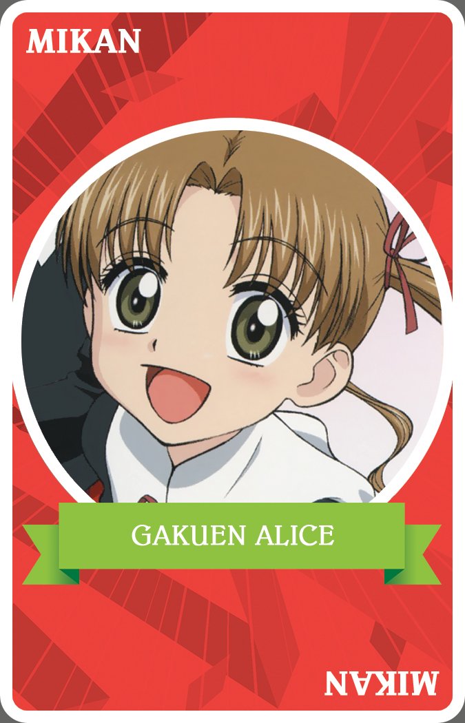 Mikan Sakura is cheerful and caring 10 year-old girl that attends Alice Academy for gifted students. She possesses the rare Nullification Alice that renders other people’s Alices useless. Mikan is often referred to as being naïve, clumsy, and loud, but she makes friends easy and would do anything to protect them.